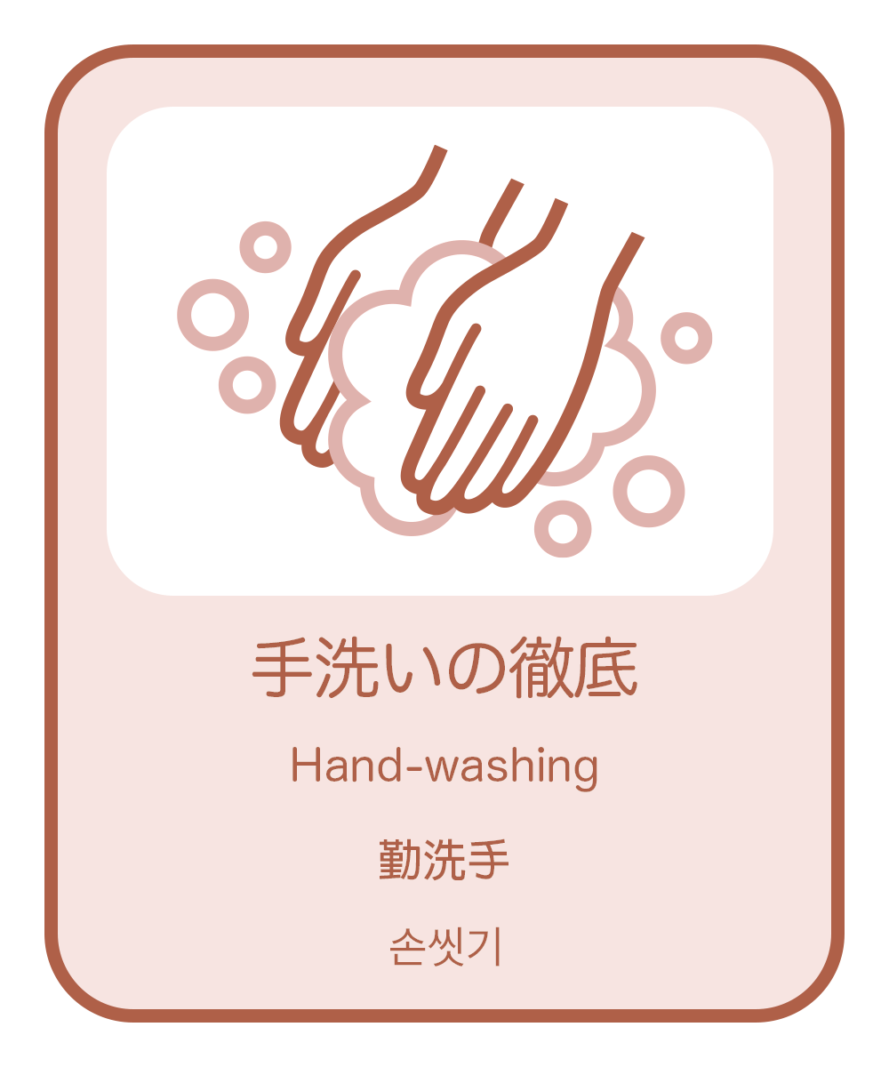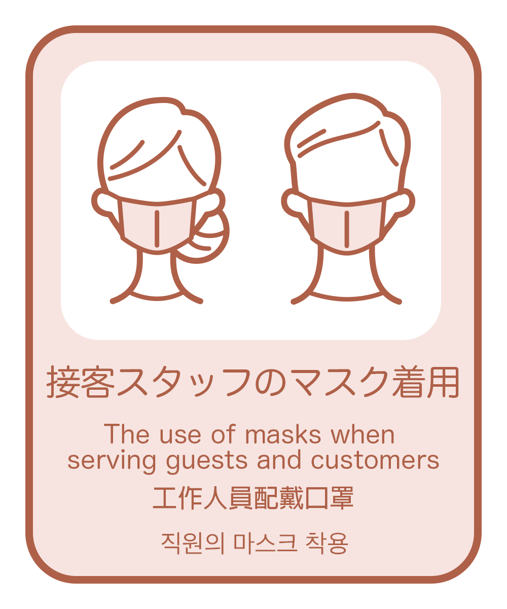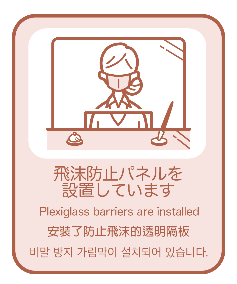 また、新型コロナウィルス感染予防対策としてテーブル、トレー、食器、グラス、扉など定期的なアルコール拭き取り消毒を実施しております。